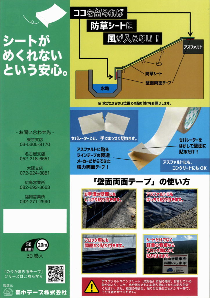 防草シートなどのシート類をコンクリート成型品に固定する強粘着タイプの両面テープです。